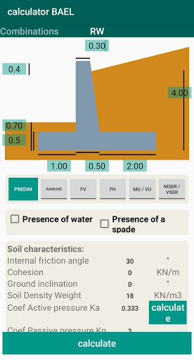 - Possibility of calculating the internal and external stability of a retaining wall.
