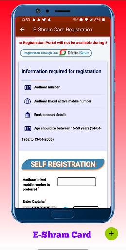 E Shram Registration E-Shram Card App