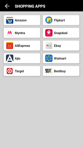 This Application also contains Online Shopping Apps/sites like Amazon, Flipkart, Myntra, Snapdeal, AliExpress, Ebay, Ajio, Walmart, Target and BestBuy where we shop variety of product in just one click.