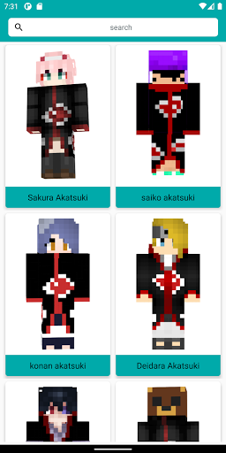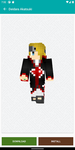 Here we have compiled a list of the best Akatsuki Skins for Minecraft Pocket Edition. Choose your favorite Akatsuki Skins with one button download and change minecraft skins in your game menu. This is a skins app for minecraft developed by fans for fans. This is an application where you can find thousands of skins and use them every day, and the skins are updated regularly. Akatsuki skins are part of the very popular anime skins