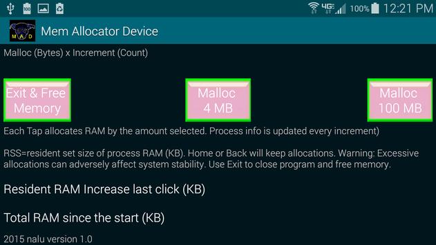 Use with "Meminf" or other system memory inspection utilities to further isolate causes of unexpected behavior when stress testing your app.