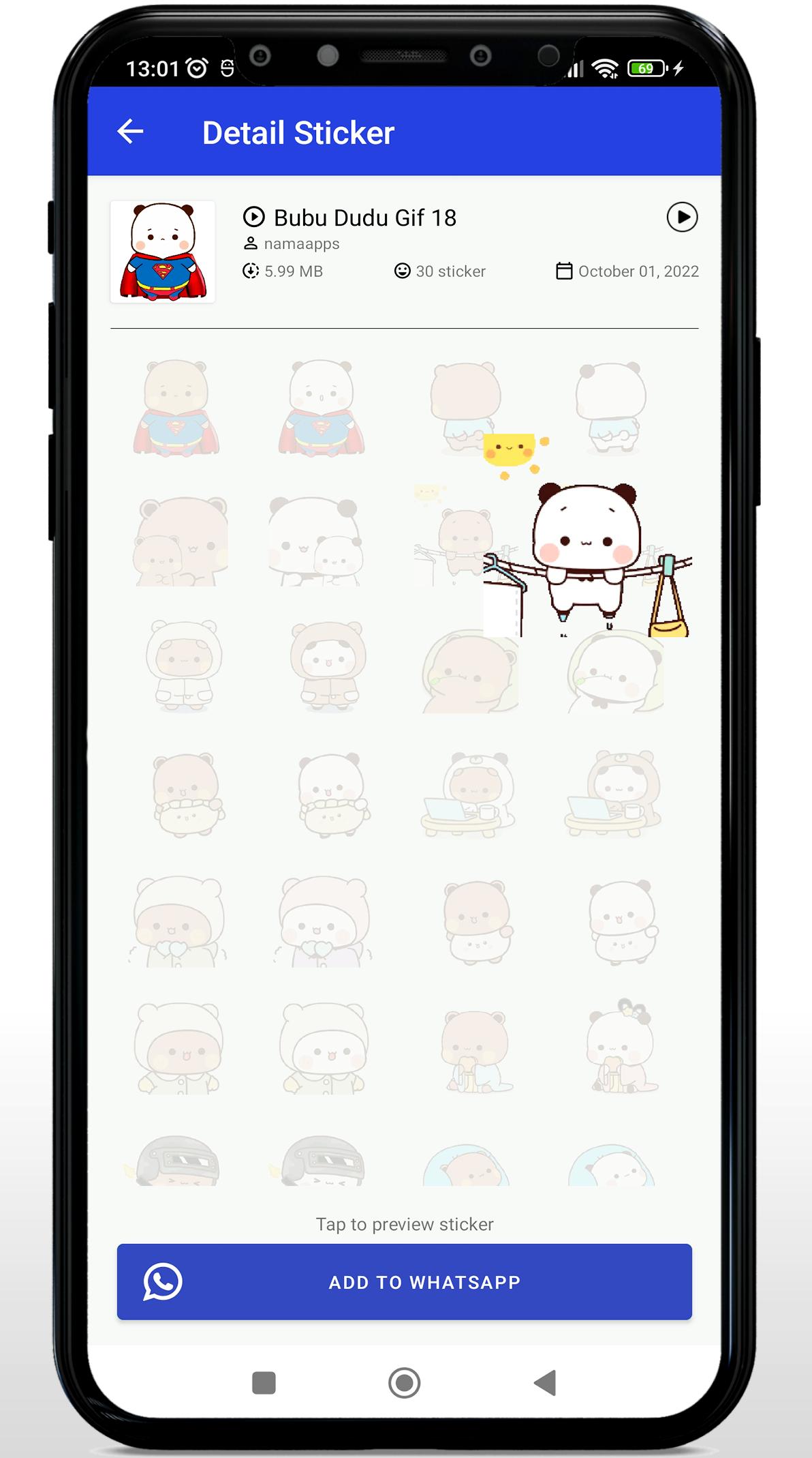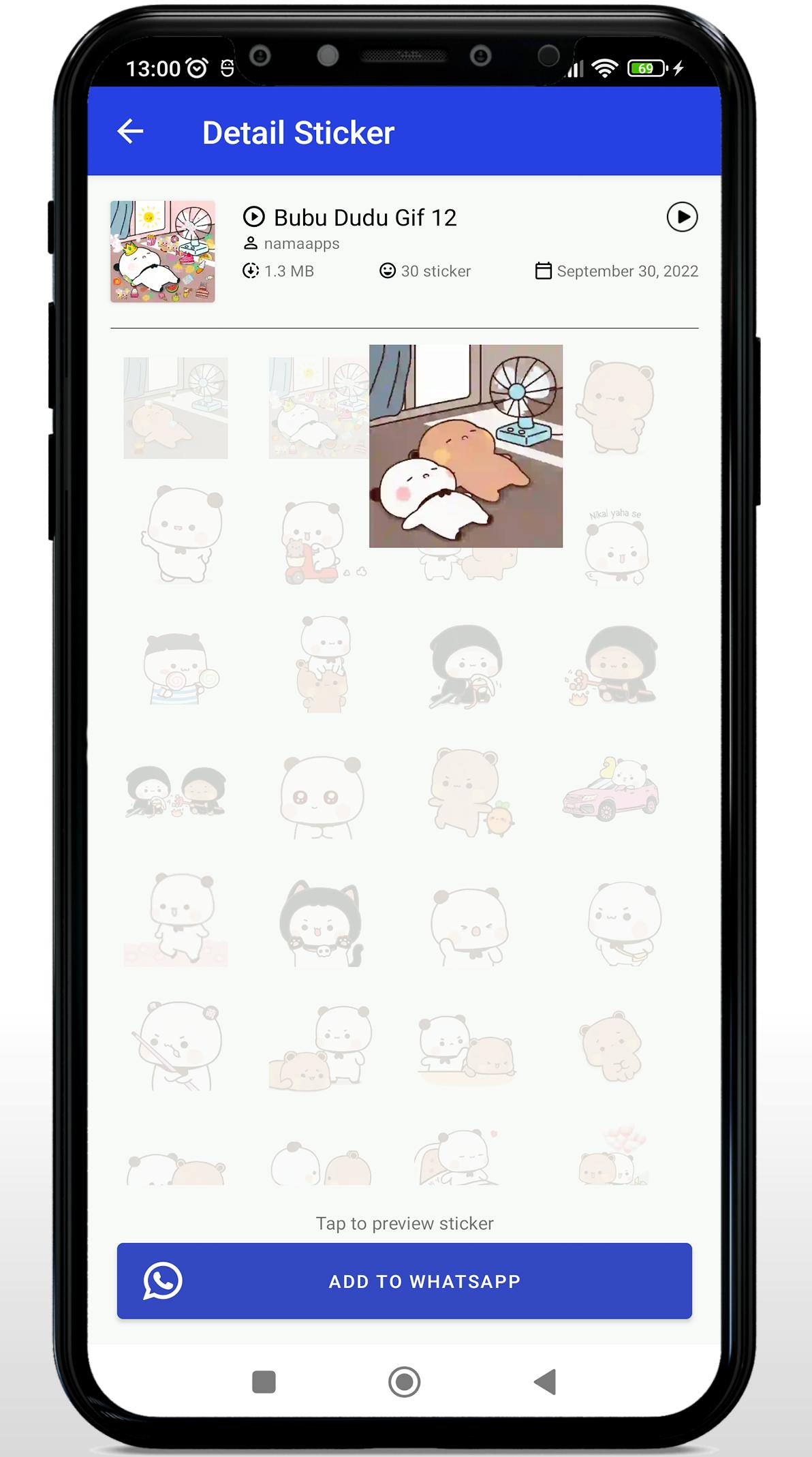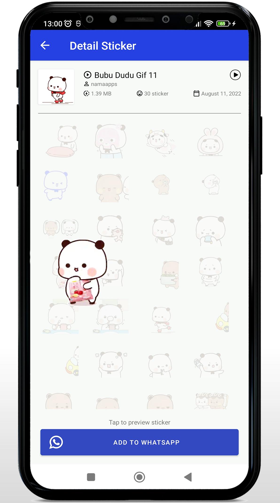 1. Download this application Animated Bubu Dudu Panda WAStickerApps