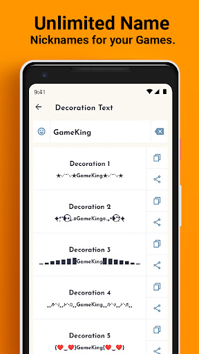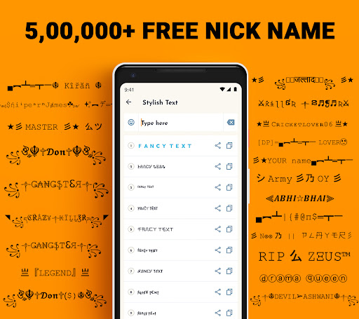 You’re a game fan? Do you wish your games to have unique nicknames? How’s your name or your nickname styling?! Love design?! Love styling?! You can change your name to cool, stylish names with stylish fonts and the best fonts with this cool nickname generator application. This Nickname generator helps solve the problem facing ‘Nickname is already taken’ players, you can use this nickname-finder to flaunt your name full of stylish fonts and fantastic art, or just customize your name with fantastic texts. Have this Nickname maker app to distinguish you from other game players.