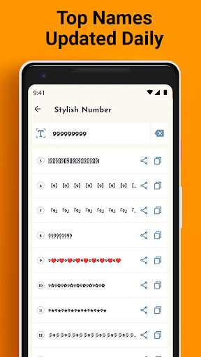 With this stylish app for Nickname finder, there are many rare fonts with cool symbols. You can use various calligraphic font styles to set any text of your choice and decorate it with different font items for your social network profiles.