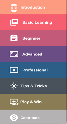 Beginner Level: - A free, offline, self-paced series of topics for aspiring Android development with no prior programming experience. In this user will see types of layout, menus. This section also has coding and design facility to let you know what’s going on.