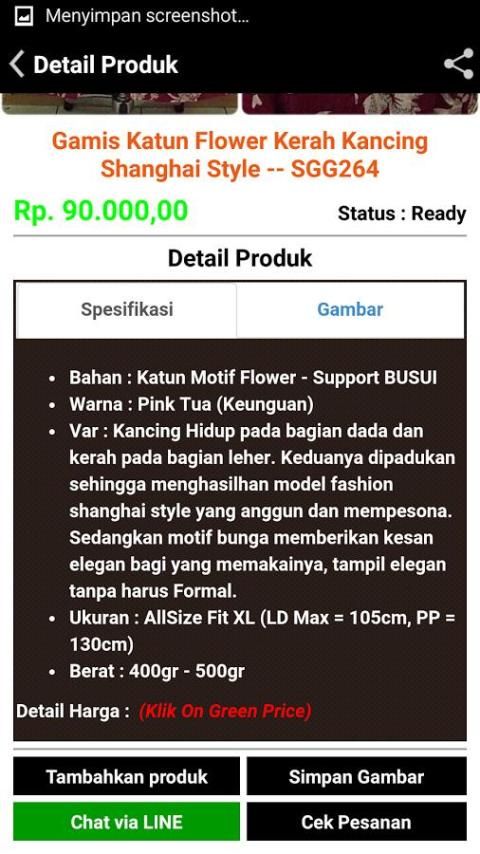 * Integrasi Fitur Chat Dengan Media Sosial LINE@ pada tiap Detail Produk