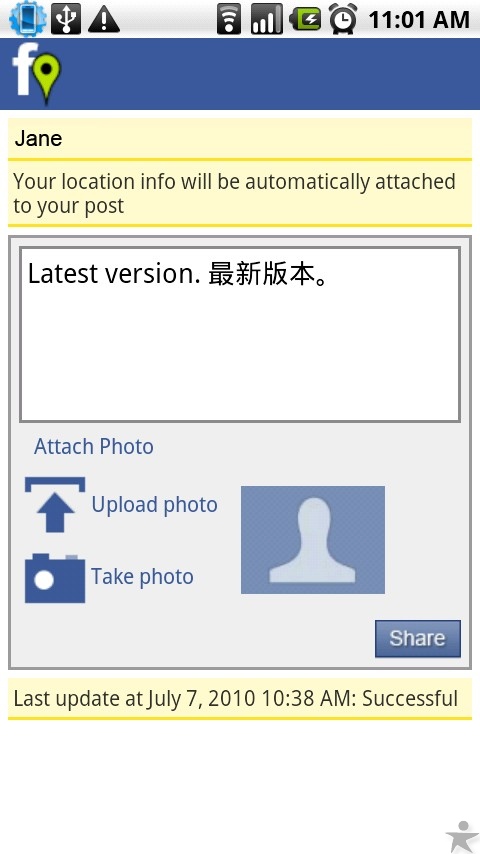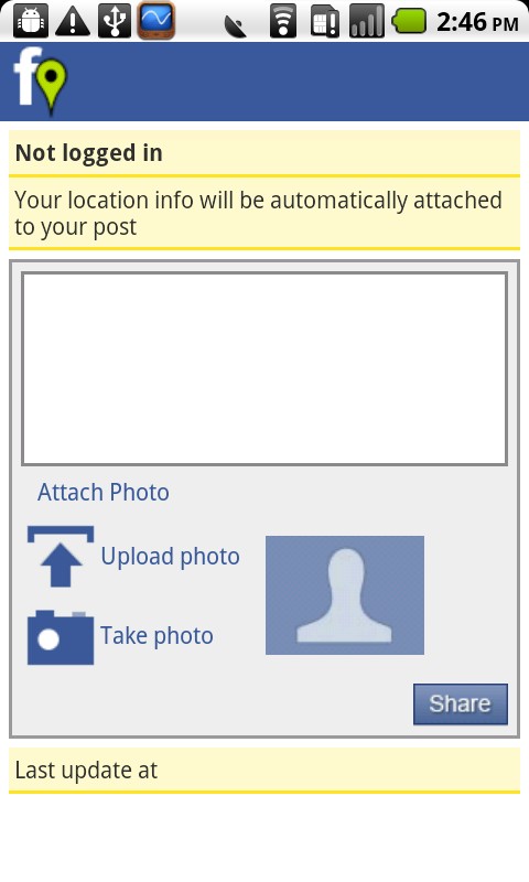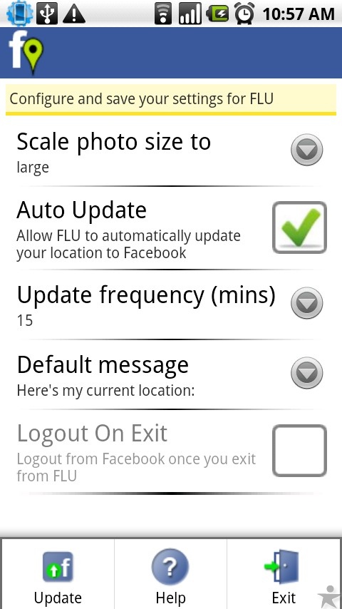 - FLU let you post update on your Facebook. The location name and A Google Maps link of your current location will be posted with your message automatically .