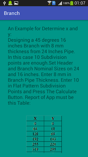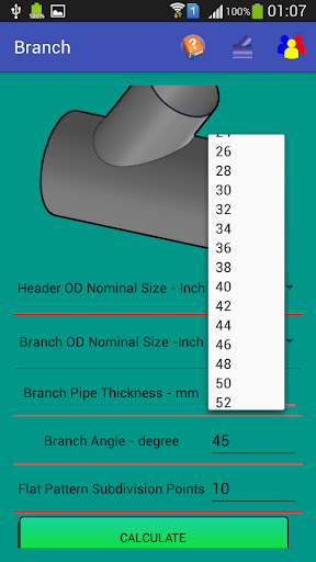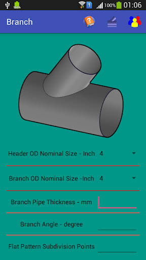 Branch uses to get a line from Head Pipe in bigger sizes usually. Also uses when difference between Head line and Branch line is too much and standard TEE is not exist. It is worth mentioning that Standard TEEs build just for 45 and 90 degrees junctions and in other angles we should be use branches. This app is the most accurate way to design Flat Pattern of Branch in any standard sizes and any angle that Piping Engineers, Technical Officers, Construction Supervisors, QC Inspectors, Fitters and etc., could use this App.