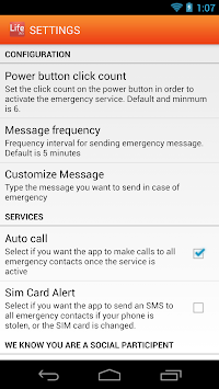 One has to just press the power button repeatedly for a MINIMUM of as many times as is configured in “power button click count” and your phone will vibrate to indicate that the service is now active. Default count is 6. So if you have not changed this configuration from settings of app then in case of emergency you just have to press the power button of your phone for more than 6 times.