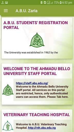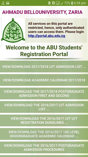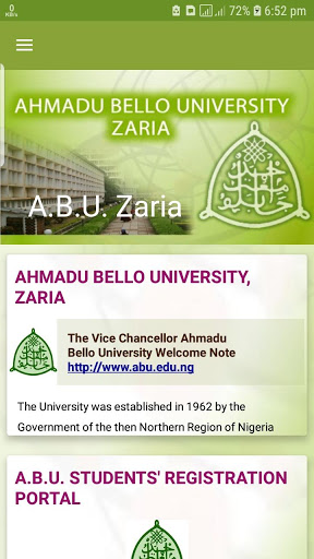ABU Zaria Android Mobile App is designed in such away that students, staff, prospective applicants and the general public can have an easy access to the university's information.