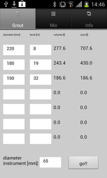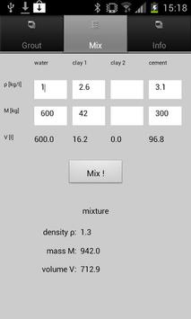 A simple app that allows you to calculate volumes of boreholes drilled with different diameters. You can also calculate the amounts of different grout additives by supplying weights and specific weights of two clays, water and cement.