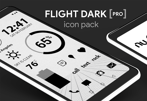 Flight Dark Pro is a simple minimalist, clean, flat & dark black icon pack with transparency in the icons to blend in well with your backgrounds. Icons feature clean & flat handmade designs. Custom wallpapers featuring scenic skies, clouds & landscapes included.