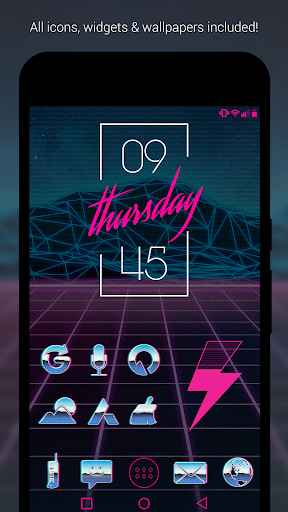 • Chrome, retro and neon icons work best with dark futuristic 80's wallpapers.