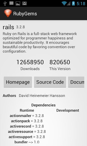 This awesome app is perfect for everyone that is a RubyGems.org enthusiast. It lets you browse the awesome RubyGems.org repository that has almost 50.000 Ruby libraries (gems) available.