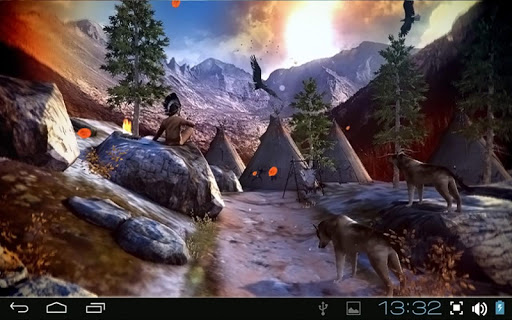 The most photo realistic 3D live wallpaper on Google Play for your phone or tablet! Absolutely real, amazing 3d scene of Indian village. Ancient world lives in full harmony with nature and in this work you can see most of Native Americans symbols, wolves, eagles, turtles. All the elements are animated, so take a time to discover what the whole environment is actually living! Just relax and take a look at this fantastic ancient world! Now along with more cameras and amazing cinematic view!