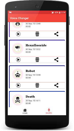 App has new 23 effects like Chipmunk, Helium, Hexafluoride, Alien and more. Apply them, save them and share with your friends.