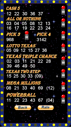 Texas Lottery Quick Pick generate QP number for Texas lottery and jackpot. Quick pick number for Lotto Texas, All or nothing, Powerball, Megamillions, Pick 3, Pick 4 , Cash 5, Texas Triple Chance, Texas Two Step.