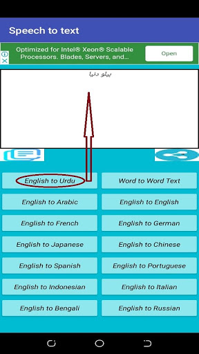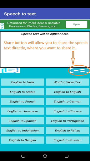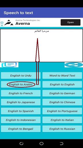- No more effort to write text messages, Share the translated text of different languages via share button directly on Whatsapp or on social media, No scroll down option, world most speaking languages option has been placed at one place, Covert English Speech into multiple languages, Arabic, Urdu, French, Japanese, Spanish, Indonesian, Bengali, German, Chinese, Portuguese, Italian and Russian and we believe Its accurate therefore it has been linked with Google's speech recognition service.
