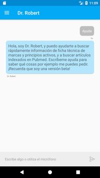 Dr. Robert proporciona información como referencias y revisiones de una determinada patología, últimas publicaciones de una especialidad, y además la información técnica actualizada de cualquier fármaco autorizado por la AEMPS.
