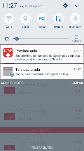 - Possui notificações alertando a próxima aula;
