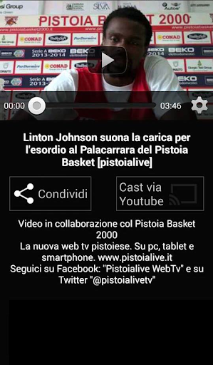 Inoltre, se possiedi un Chomecast, avrai la possibilità di guardare tutti i video di Pistoialive sul tuo tv! Ti basterà scegliere "Cast via Youtube" e poi attivare la riproduzione via Chromecast!
