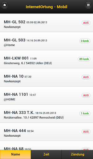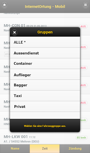 • Überblick aller Fahrzeuge (km/h, Zeit, Standort, Zündung ein/aus)