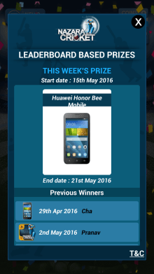 ★Download Nazara Cricket and be the top score. Huawei Honor mobile give right away!