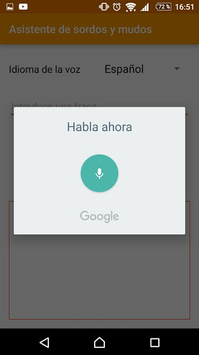 Gracias a esta aplicación podrás comunicarte con personas sordas y/o mudas, o si lo eres tú, con los demás. Podrás pasar tu voz a texto o tu texto a voz. La aplicación soporta 4 idiomas (por ahora): Español, Inglés, Francés y Alemán. ***NO TRADUCE LO QUE DICES***