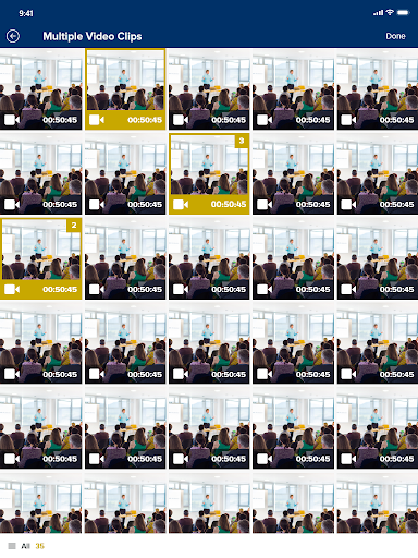 You can select multiple clips from within the app and from your device to combine videos together for uploading as a single video.