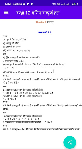 कक्षा 12 गणित complete solutions in hindi