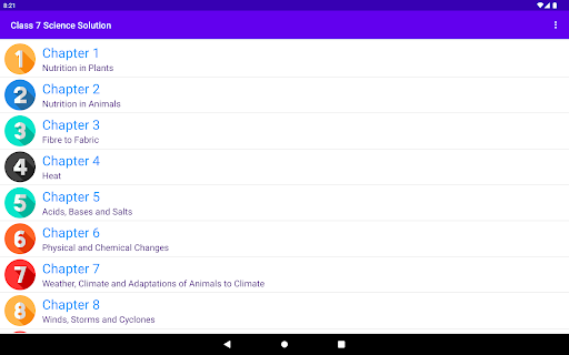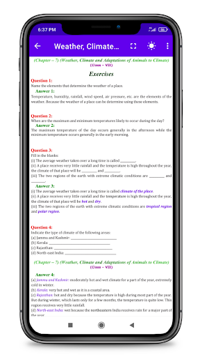 This app contains solution of all exercise questions of class 7 science NCERT Book. This will help students of class 7 to find answers to science questions easily and quickly. This is an offline app and can be used without an active internet connection. Solution to all 18 chapters are present in the app.