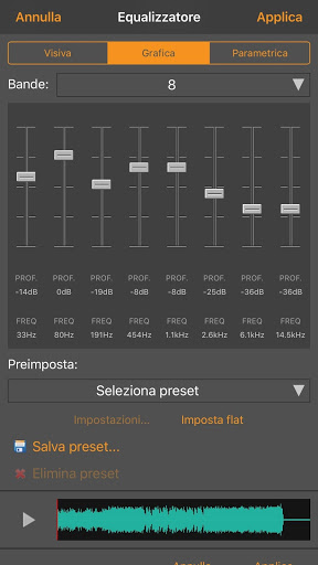 • Gli effetti includono amplifica, normalizza, eco e altro