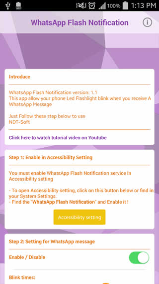 - We made this Application aim to help people who want flashlight notification customized for WhatsApp and improve user experience when using the app.