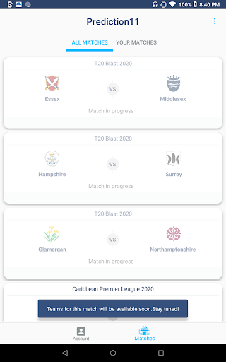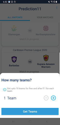The team will be unique across the Prediction11 application. For all the teams Prediction11 application creating, unique team only will be provided to user at any time.