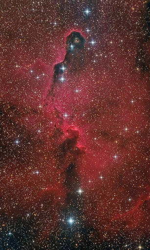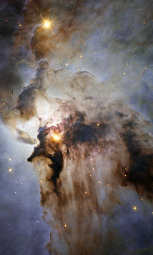 Most nebulae are of vast size even millions of light years in diameter. Contrary to fictional depictions where starships hide in nebulae as thick as cloud banks in reality a nebula that is barely visible to the human eye from Earth would appear larger but no brighter from close. The Orion Nebula the brightest nebula in the sky that occupies a region twice the diameter of the full Moon can be viewed with the naked eye but was missed by early astronomers. Although denser than the space surrounding them most nebulae are far less dense than any vacuum created on Earth a nebular cloud the size of the Earth would have a total mass of only a few kilograms. Many nebulae are visible due to their fluorescence caused by the embedded hot stars while others are so diffuse they can only be detected with long exposures and special filters. Some nebulae are variably illuminated by T Tauri variable stars. Nebulae are often star-forming regions such as in the Pillars of Creation in the Eagle Nebula. In these regions the formations of gas dust, and other materials clump together to form denser regions which attract further matter and eventually will become dense enough to form stars. The remaining material is then believed to form planets and other planetary system objects.