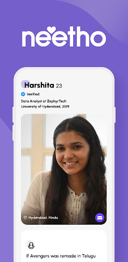 Neetho is India’s first vernacular dating app that is designed to bring Telugu residing in and outside India closer for one common reason — finding long-lasting relationships. The word 'neetho' translates to 'with you' in Telugu. So, the app is designed to offer high-intent dating experience that is culturally aligned with Telugu needs. Neetho's unique approach to appreciating sensitivities has made it one of the fastest-growing vernacular apps; and as we see it, Neetho is soon going to replace the need for matrimonial platforms out there for the Telugu community.