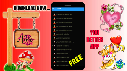 Access this application for free, you will have access to poems to fall in love with, short love poems, romantic phrases and much more.