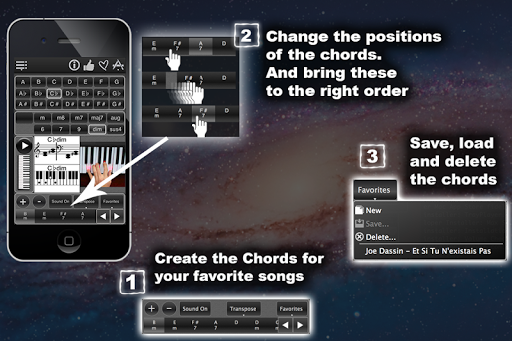 - create, save and load chords of your favourite songs,