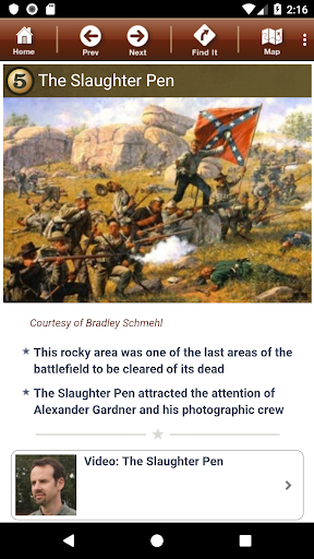 Click on our "virtual signs" to access a wealth of information related to the very location where you are standing. Onboard historian videos, audio accounts from soldiers and civilians, photos, facts, and more are just a click away. Never has so much information been made available in such a portable device!