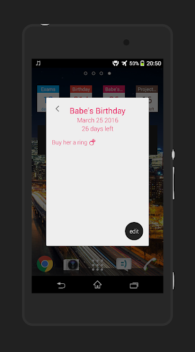 - Access your dates, days left and notes, fast and easily from home screen directly.