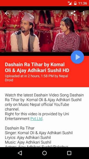 All the contents- videos, audio and images included in "Dashain Tihar" app are streamed from Youtube Server and gathered from different online sources respectively. Videos are played using the official youtube player API. We don't own copyright on any of the images, audios and videos used inside our app. We only publish playlist using videos available in Youtube platform. If you think your content is used without your permission, please send us your request to remove content from our app. We will respond you positively within 48 hours.