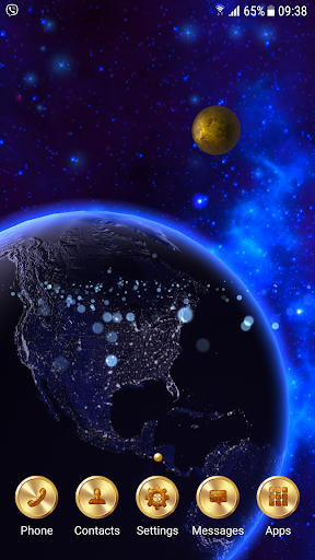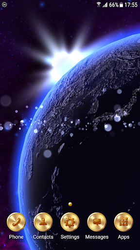 In this wallpaper, we can see an alternative version of our Solar system. There is no Milky Way or known constellations. Instead of their beautiful nebulas and thousands of bright stars on a night sky. And only big celestial bodies present in this live wallpaper - Sun and nine planets (Mercury, Venus, Earth, Mars, Jupiter, Saturn, Uranus, Neptune, Pluto). Earth and Mars's planets look more like our real planets and other planets are look less similar. Jupiter looks brighter than its real prototype and color palette a little different. Real Venus planet completely covered by clouds but in this alternative version, we can see surface through the clouds. Saturn, Uranus, and Neptune also look brighter than the real planets and color palette different.