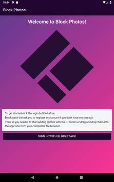 Block Photos is a photo album that stores your photos encrypted on a storage provider of your choosing. For the time being you can only pick the default Blockstack storage or creating your own Gaia Hub.