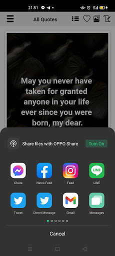 - You can switch between 2 views (image quote view and text quote view) easily.