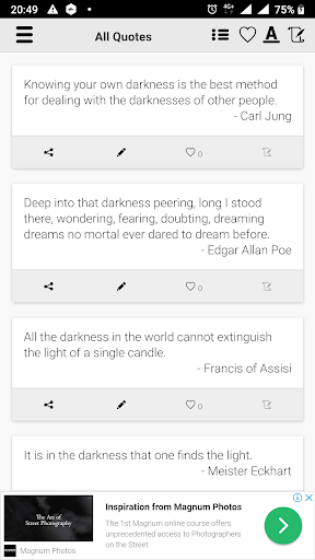 This is an App that stores many great quotes about darkness. I will continue adding new quotes timely. There are many Darkness Quotes that you can learn and share with your friends.