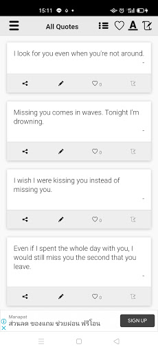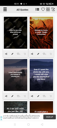- You can switch between 2 views (image quote view and text quote view) easily.