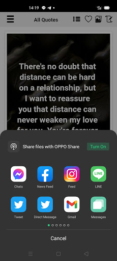 - You can switch between 2 views (image quote view and text quote view) easily.