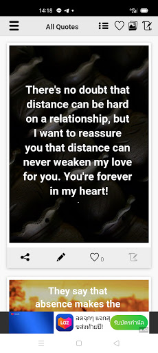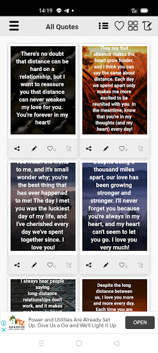 This is an App that stores many great long distance love messages. I will continue adding new quotes timely. There are many long distance love messages that you can send to your love.