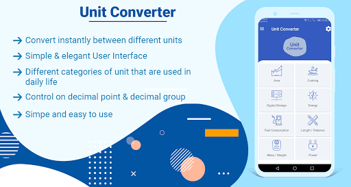 This unit convert app help you to convert all units anytime and help you to solve problem easily. The conversion calculator or measurement converter is extremely easy to use, just select the desired unit of conversion and get the needed result in a second. The result of conversion can be display and easy to copy to clip board by just clicking on copy icon.