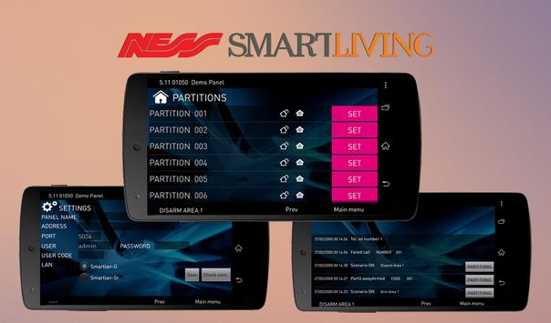 - Arm / Disarm any partition (Area) of your Ness SmartLiving System,